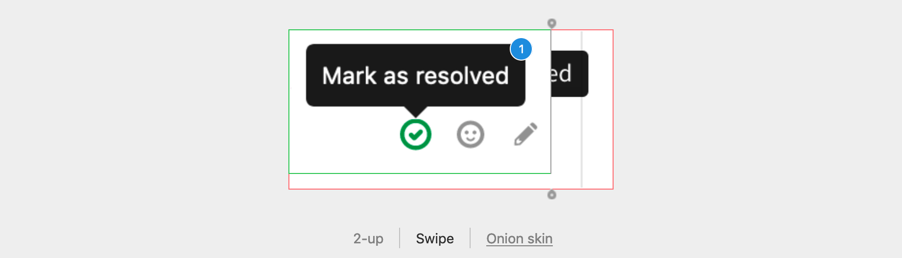 Image threads also work on diffs that replace an existing image. In this diff view mode, you can toggle the different view modes and still see the thread point badges.